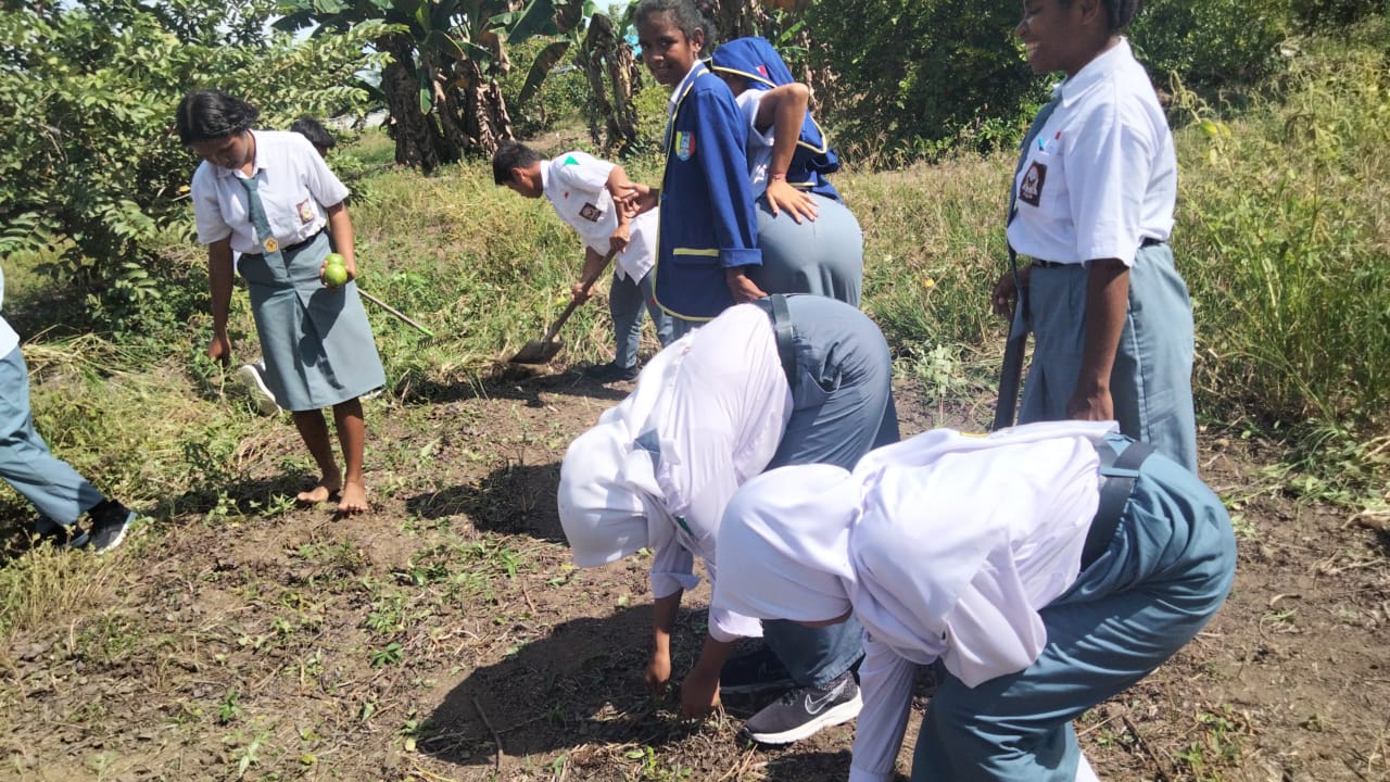 Skanto, Oleh Fajarwati. Kurang lebih tiga bulan yang lalu peserta didik kelas X dibekali pengetahuan bagaimana cara bercocok tanam sesuai kondisi daerah setempat, tepatnya di Skanto yakni dengan bercocok tanam sayuran kangkung. Tujuan memperkenalkan hal baik tersebut ke peserta didik adalah sebaga upaya guru untuk mengembangkan bakat atau minat peserta didik dalam menggapai cita-cita mereka sebagai petani sukses nantinya. Sebagai guru mata pelajaran Mulok, Imelda S.Pd memang wajib mentransformasikan ilmu yang dimiliki ke peserta didik guna dapat diaplikasikan di lapangan. Karena sejatinya, untuk mata pelajaran ini guru wajib mengajar peserta didik secara langsung dan terjun langsung praktik di lapangan. Untuk tanaman jangka pendek ini, peserta didik diawal semester sudah diberi pemaham cara mengolah tanah sebagai media menanam kangkung kemudian sekolah membelikan bibit. Kangkung dapat ditanam dengan menanam benih langsung, melalui pemindahan atau menggunakan stek batang. Penanaman secara langsung dapat dilakukan bila jumlah benih cukup banyak dan kurang tenaga. Benih disemai pada bedengan dengan larikan sedalam 1-1.5 cm, jarak antar larikan 15 - 20 cm dan dalam larikan 5 cm. Benih/biji Kangkung tidak perlu direndam, namun perlu disemai di tempat terkena sinar matahari langsung, kemudian ditanam dan dirawat. Benih mengeluarkan tunas 3 - 5 hari, panen pertama Kangkung mulai 20 - 30 HST (Hari Setelah Tanam).