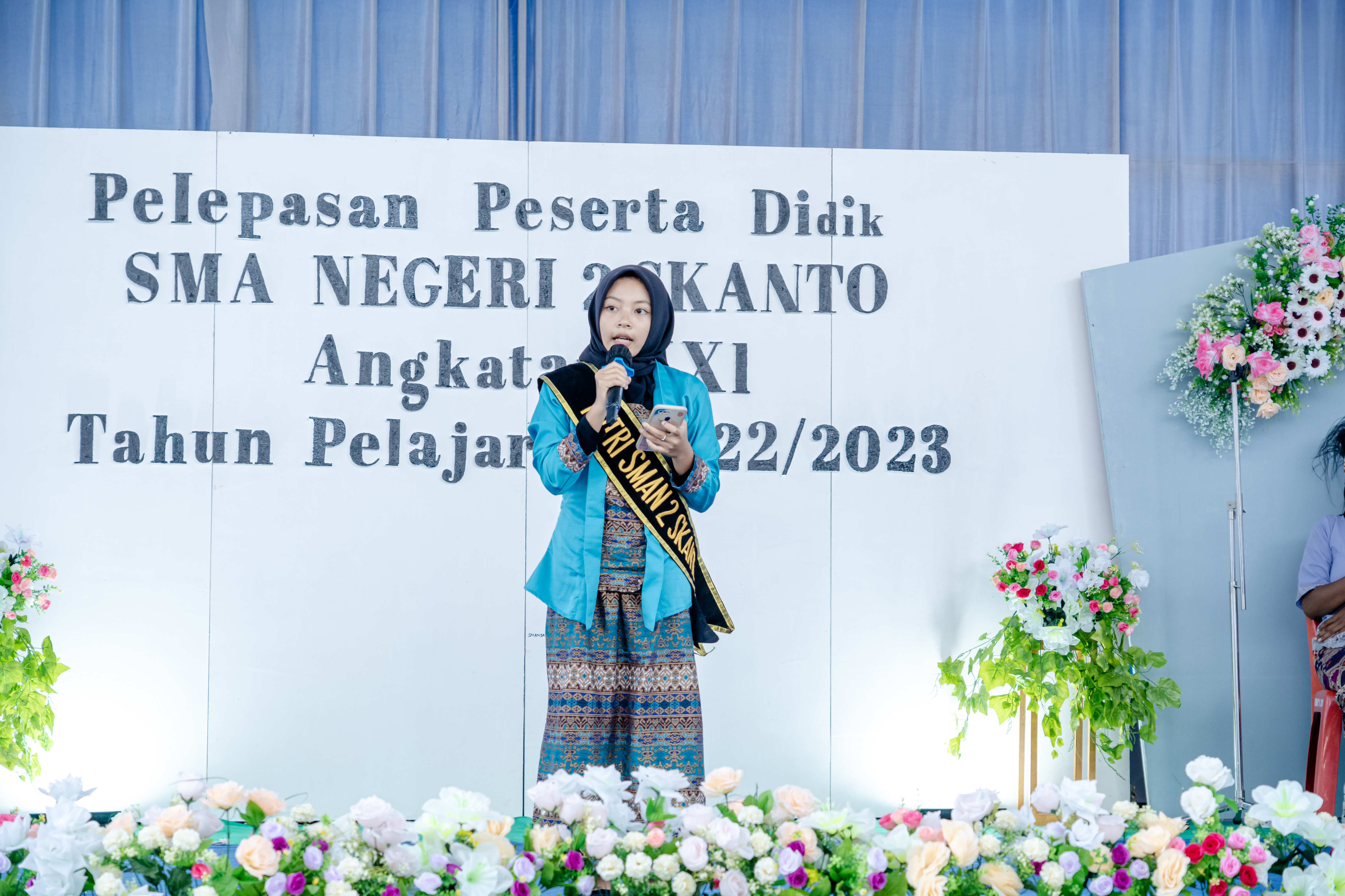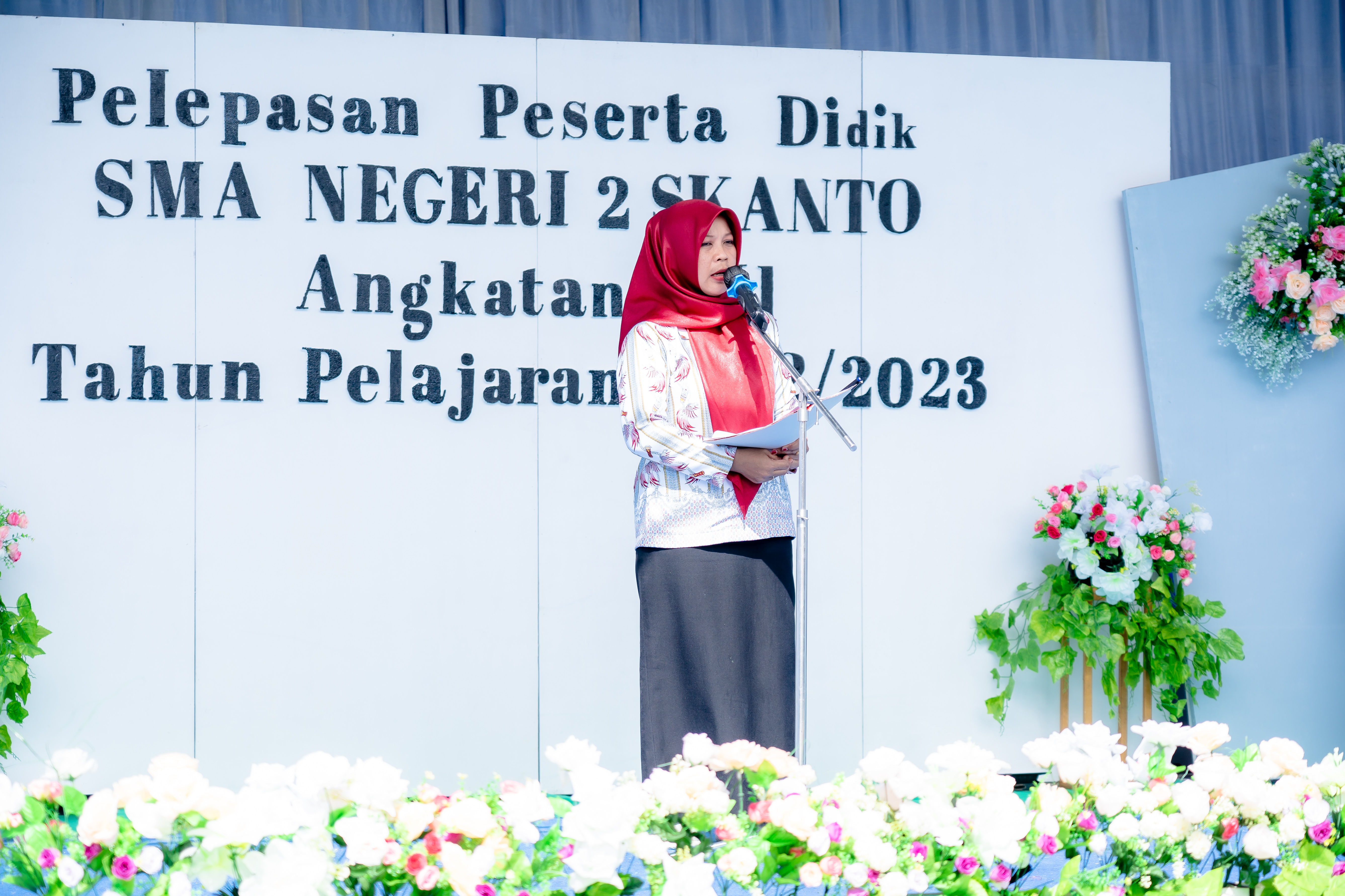 Dalam agenda penyampaian atau pengembalian peserta didik dari pihak sekolah ke pihak orang tua, perwakilan dari orang tua yakni bapak Arsyad dan Waris menyampaikan " Sebagai orang tua, saya memohon maaf atas segala tindakan yang telah dilakukan anak-anak selama menempuh pendidikan di SMA Negeri 2 Skanto. Tentu tiga tahun bukanlah waktu yang singkat untuk bisa mengubah cara berfikir peserta didik dari yang tidak tahu menjadi tahu dan saat ini masa itu telah usai. Sebagai orang tua kami tidak merasa rugi dan menyesal menitipkan anak kami untuk dibina di sini. Banyak keunggulan yang sekolah raih guna meningkatkan kapasitas dan kualitas peserta didik tentunya pendidik pun memiliki kualitas yang mumpuni. Kami percaya, semua jerih payah dari bapak/ibu guru akan mendapat Rahmad dari Allah SWT, Amin YRA." Ujar Bapak Arsyad orang tua dari ananda Arham Welemuli.