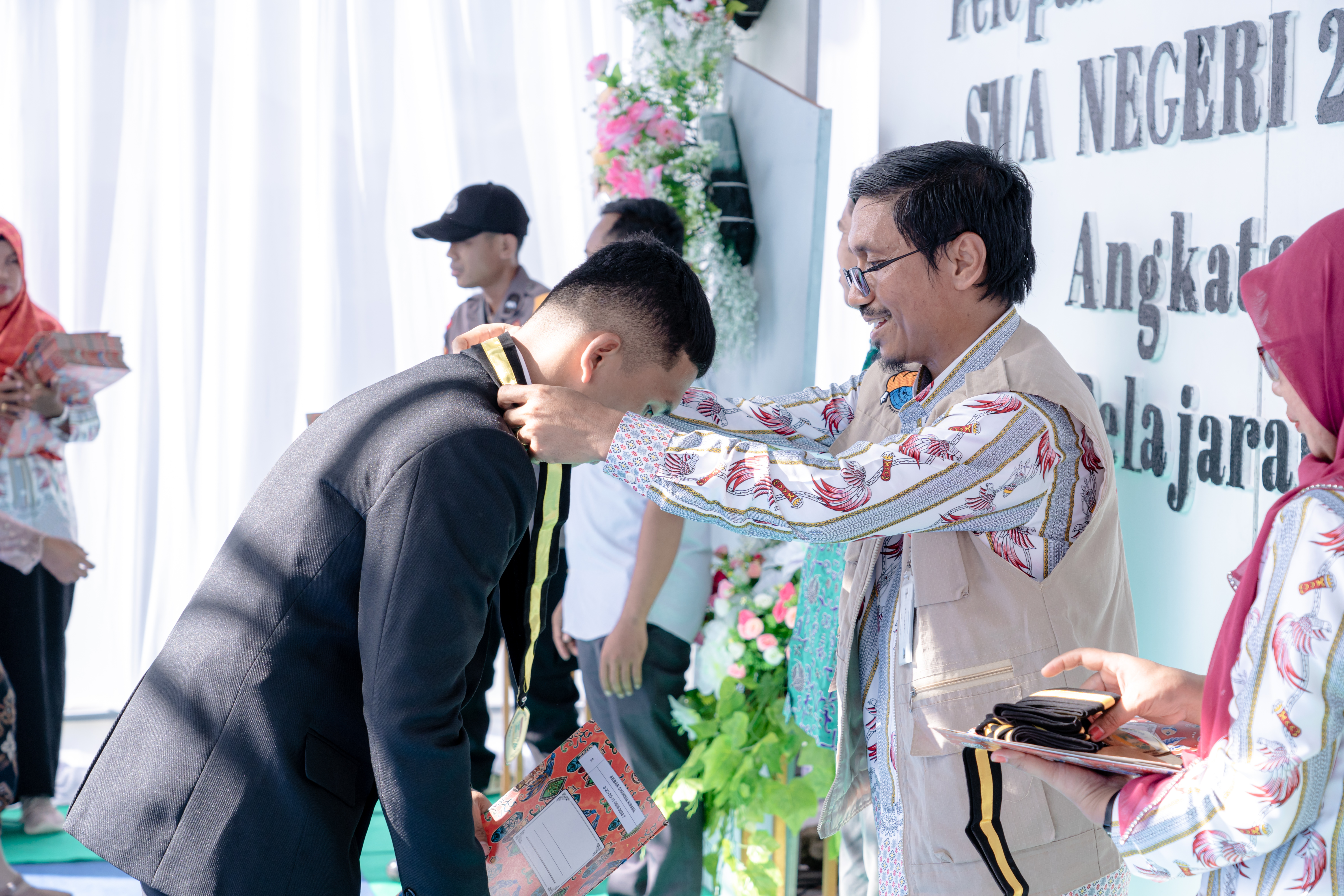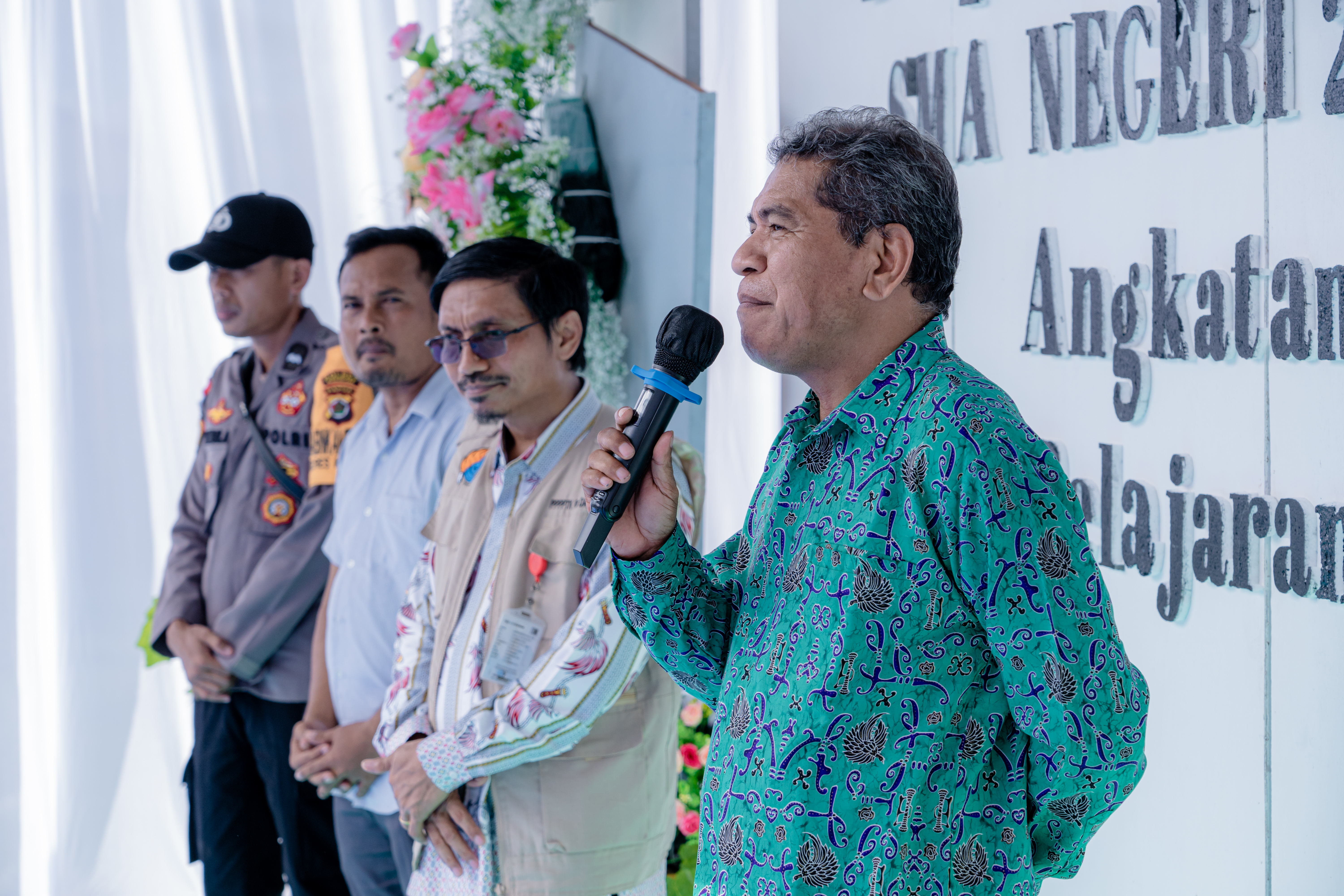 Selanjutnya, kepala SMA Negeri 2 Skanto Mesak Mantek, S.Pd.,M.Si menyampaikan sambutan bahwa dalam menempuh pendidikan di SMA Negeri 2 Skanto beliau memohon permohonan maaf jika selama ini banyak sekali sikap keras yang diterapkan, disiplin yang tinggi serta mewajibkan untuk menerapkan 5S dalam sekolah, semua itu sangat penting dilakukan demi kemajuan dan kesuksesan peserta didik kelak dimasa yang akan datang.