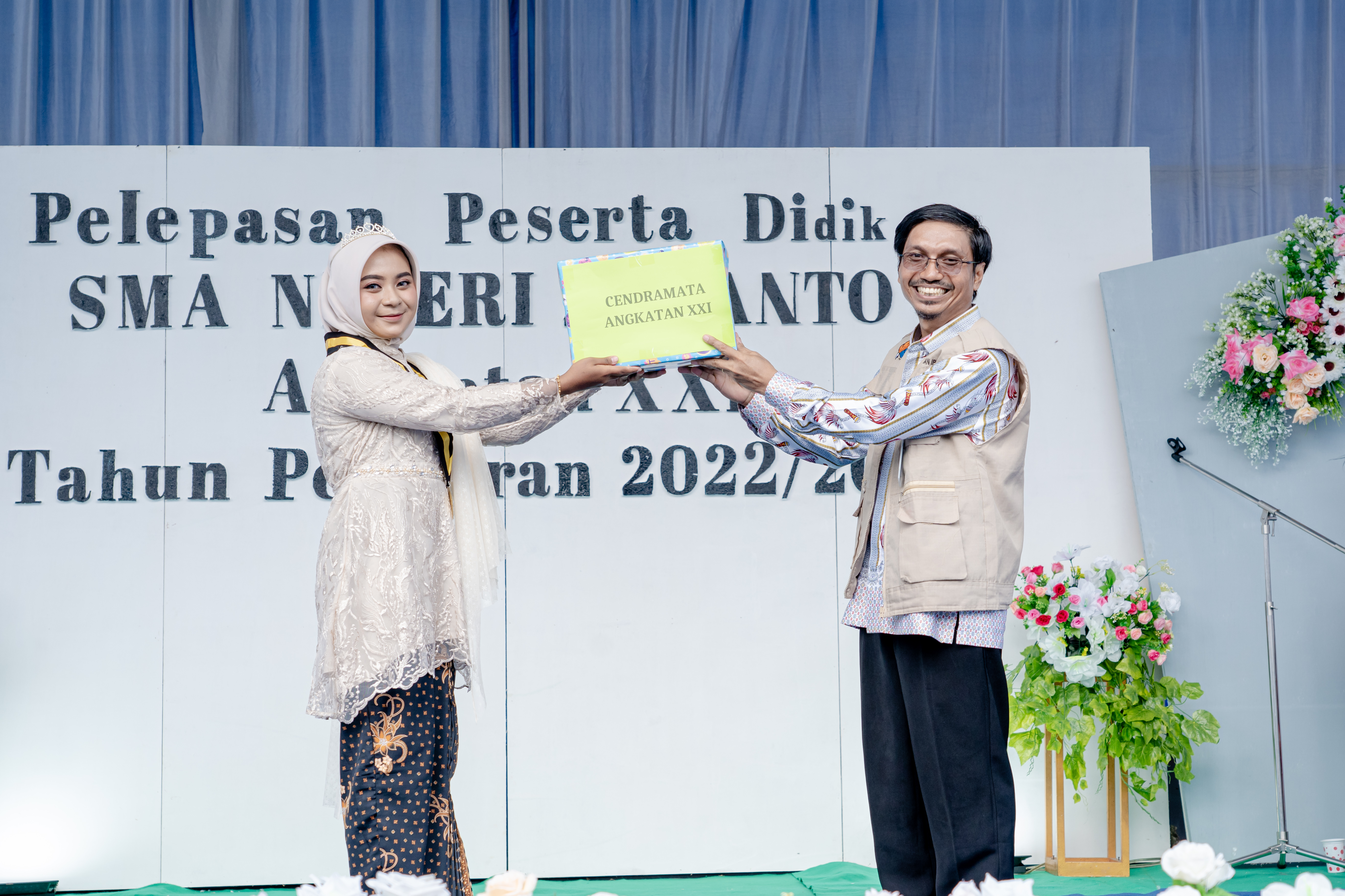 Selain pengalungan medali dan pembagian SKL, ketua panitia pun menyampaikan dan mengumumkan serta membacakan peringkat 5 besar dari semua jurusan dengan melihat nilai rata-rata tertinggi. Untuk jurusan MIPA, Peringkat 1 diraih oleh Oktaviani Al Maratus Sholikhah (86,60), peringkatt 2 diraih oleh Silvia Ayu Larassati (86,04), Peringkat 3 diraih oleh Aldy Dwi Setyawan (85,63), peringkat 4 diraih oleh Cici Ayu Andriani (85,50) dan peringkat 5 diraih oleh Farida Mega Puspita (85,39) Sedangkan dari jurusan IPS peringkat 1 diraih oleh Yomis Enumbi (85,38), peringkat 2 diraih oleh Iis Suryanti Saputri (84,65), peringkat 3 diraih oleh Amanda Fitriani ( (84,65), peringkat 4 diraih oleh Jilli Agnes Adita Awulle (84,16) dan peringkat 5 diraih oleh Muhamad Sahril Egi Ramdani ( 83,63). Dengan pembacaan peringkat tersebut, orang tua diperkenankan maju ke panggung dengan dijemput peserta didik untuk menerima reward dari sekolah.