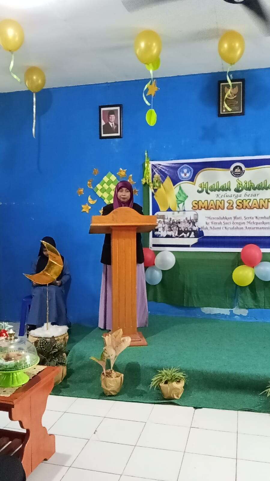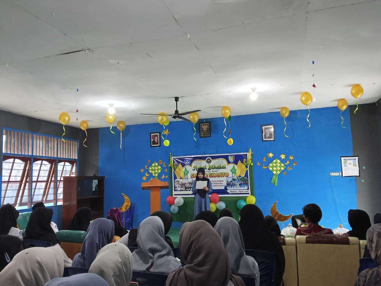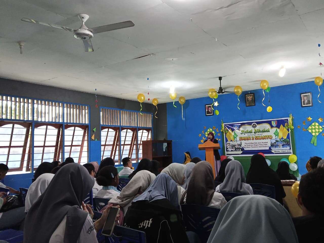 SKANTO Oleh Fajarwati – Suasana penuh kekeluargaan menyelimuti Aula SMAN 2 Skanto pada Rabu (01/04/2026) pagi. Seluruh keluarga besar sekolah, mulai dari kepala sekolah, guru, staf tata usaha, hingga siswa-siswi berkumpul dalam acara Halal Bihalal Idul Fitri 1447 H.