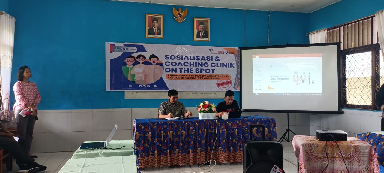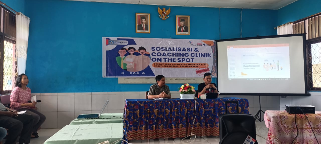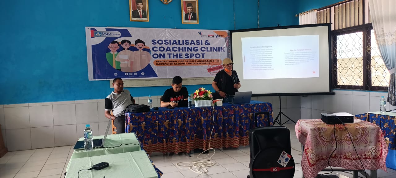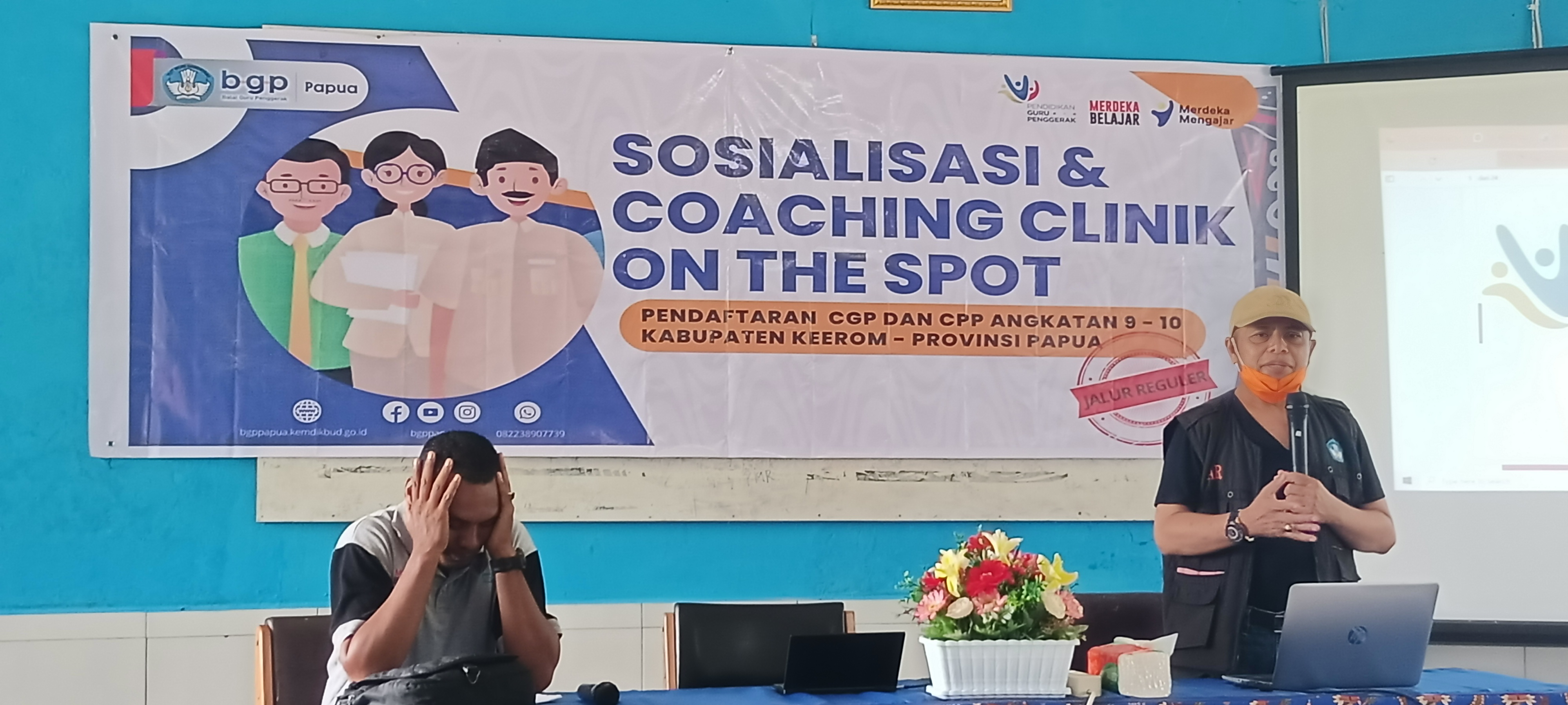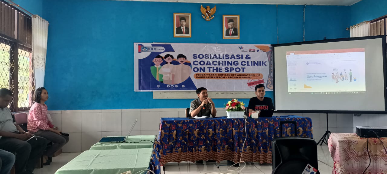 Skanto, Oleh Fajarwati. Tepat pukul 10.31 Sosialisasi dan Coaching Clinic On The Spot CGP dan CPP Angkatan 9 dan 10 siap digelar oleh BGP Papua yang dihadiri oleh Kepala Bagian Umum Bapak Irsan Faisal, Widya Prada dan Narasumber hebat dari Guru Penggerak angkatan 1. Kegiatan cooching ini dibuka langsung oleh Kabagum Bapak Faisal yang sekaligus membuka kegiatan tersebut dengan di ikuti oleh peserta dari sekolah-sekolah yang ada di Kabupaten Keerom khususnya distrik Skanto, baik tingkat SD, SMP maupun SMA. Kegiatan yang berlangsung sehari tersebut berisi rangkaian penyampaian materi dari Widya Prada dan Guru Penggerak Angkatan 1 yang telah berpengalaman dalam mengikuti program guru penggerak dan pengajar praktik yang tugasnya nanti akan mendampingi dan melakukan coaching pada calon guru penggerak. Kegiatan sehari tersebut, mendapat respon positif dari berberapa guru yang tertarik untuk ikut program ini dengan linimasa hingga tanggal 10 Januari 2023.