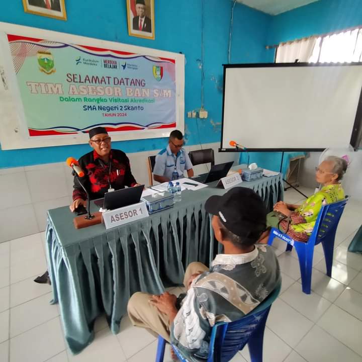 Skanto, 18 Oktober 2024. Untuk mengetahui kelayakan serta kinerja satuan pendidikan perlu dilakukannya suatu penilaian oleh Badan Akreditasi Nasional Sekolah/Madrasah (S/M) secara berkala tiap lima tahun berdasarkan undang-undang nomor 20 tahun 2003 pasal 1 ayat 22. Tahun ini SMA Negeri 2 Skanto kembali dinilai yang sebelunya pada tahun 2019 telah memperoleh nilai 99 dengan predikat "A" Unggul. Jumat tepatnya tanggal 18 Oktober 2024 Tim Asesor BAN S/M Provinsi Papua Drs. Heriyanto, M.Pd dan Drs. Suyono, M.Pd. mengunjungi SMA Negeri 2 Skanto dalam rangka Visitasi Re-Akreditasi. Kedatangan Tim Asessor disambut baik oleh Kepala Sekolah beserta Jajarannya.